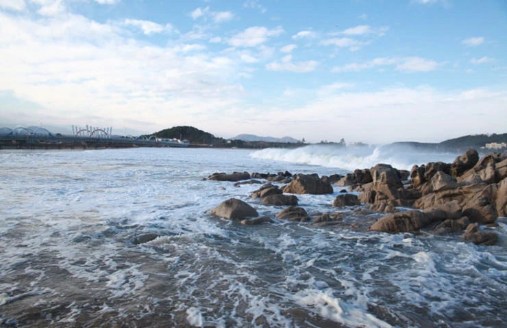 능파대능파대는 육계도를 이루는 암석해안 상에 발달한 대규모 타포니(tafoni)* 군락이다. ‘파도를 능가하는 돌섬’이라는 능파대의 이름은 파도가 몰아쳐 바위를 때리는 광경을 빗대어 붙여졌다. 육계도는 모래더미가 쌓여 육지와 연결된 섬을 말하며, 타포니는 암석의 측면(암벽)에 벌집처럼 집단적으로 파인 구멍들을 가리킨다.
