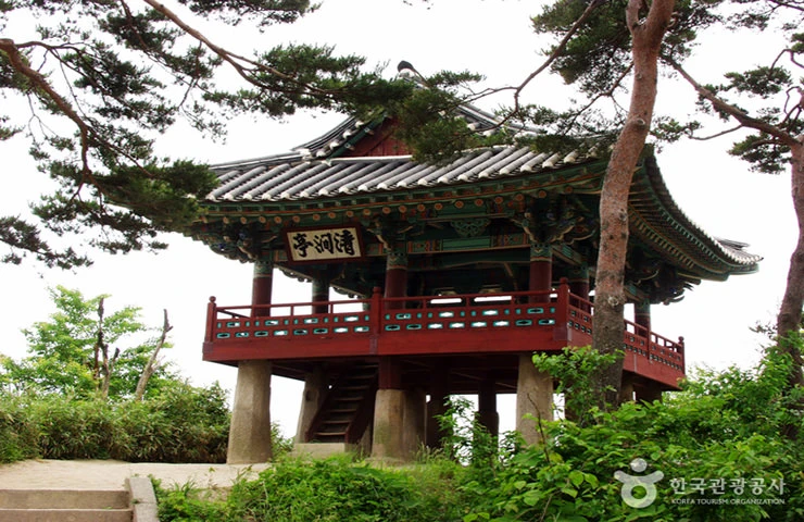 청간정설악산 골짜기에서 흘러내리는 청간천과 만경청파가 넘실거리는 기암절벽 위에 팔각지붕의 중층누정으로 아담하게 세워져 있으며, 이곳에서 바라보는 일출과 월출시의 장엄함과, 밀려오는 파도가 마치 뭉게 구름이 일다가 안개처럼 사라져 가는 황홀경으로 관동팔경중 수일경으로 손꼽히고 있다.